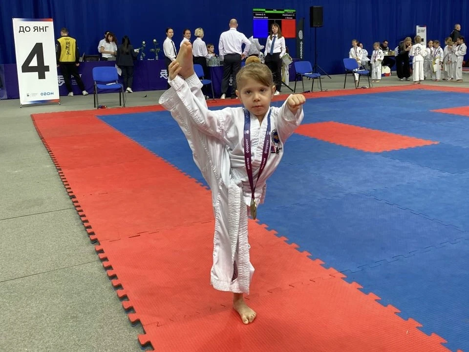Это крупный региональный турнир: более 600 участников! Серьёзная конкуренция, волнительная атмосфера — и наши самые маленькие спортсмены не дрогнули. Дошкольная группа секции «Юный тхэквондист» под руководством тренера Ксении Смекалкиной заняли весь пьедестал в своей категории! Смотрим на результаты и гордимся: