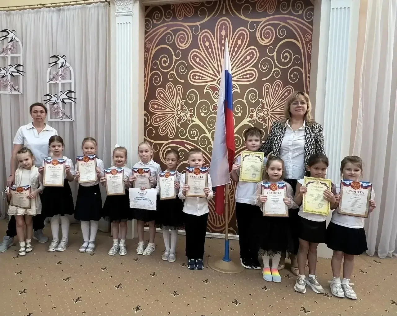 в церемонии приняли участие Антонина, Вера и Мирослава. Девочки достойно выступили на соревнованиях по плаванию «Дельфинёнок».